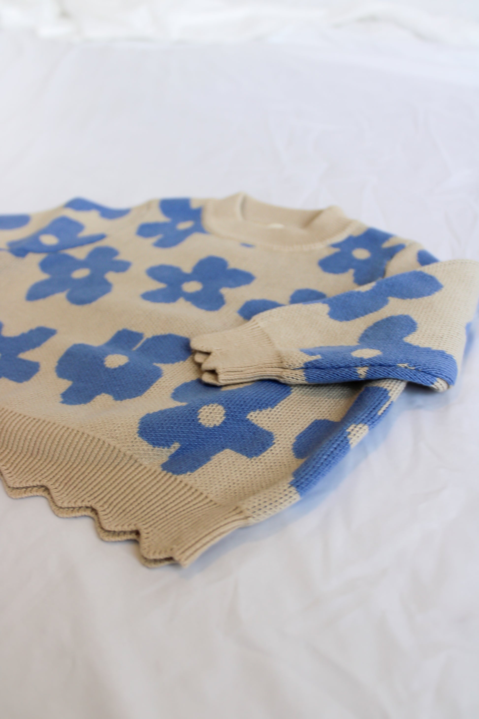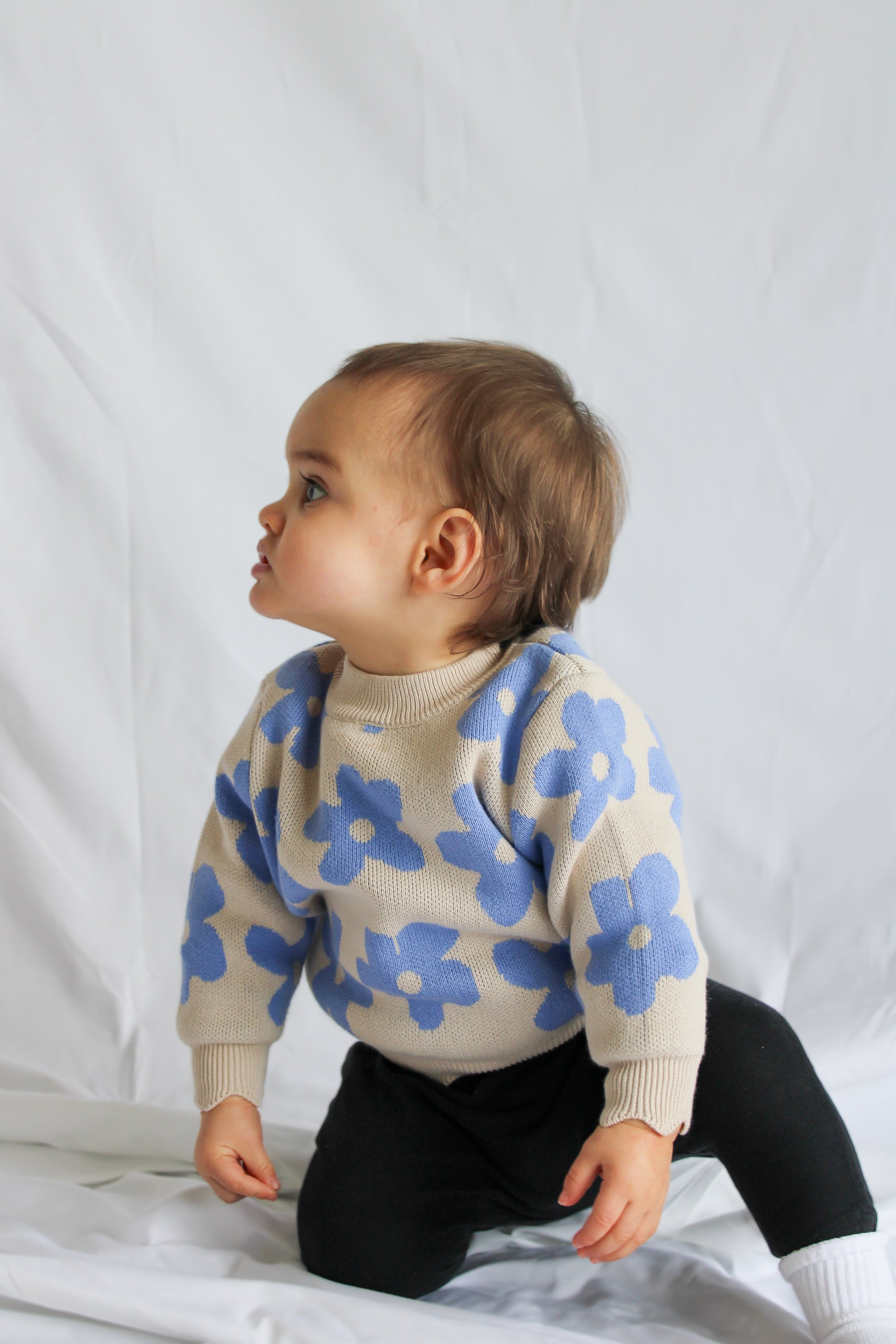 Bright, cozy, and irresistibly cute – our Delilah Jumper in Cornflower is a must-have for your little one’s wardrobe. Crafted from 100% organic cotton, this soft cream knit is sprinkled with bold cornflower-blue blooms for a playful, timeless look.