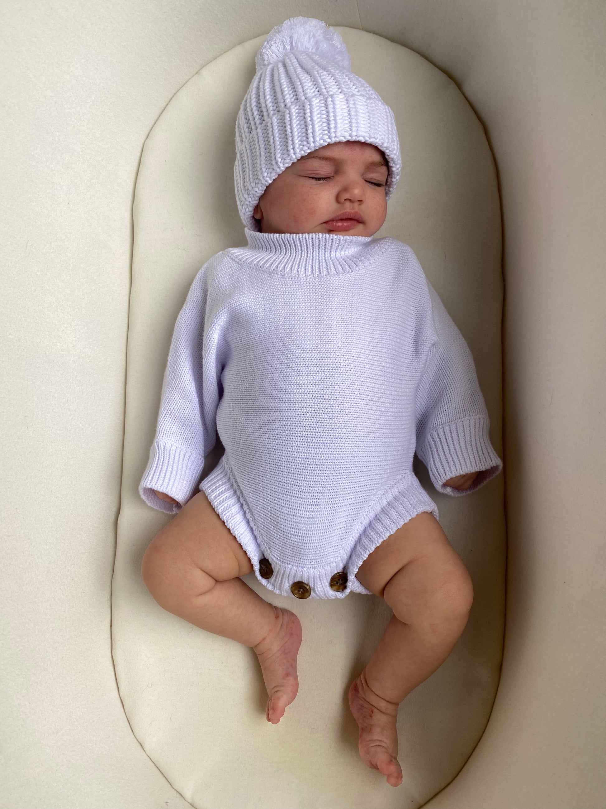Our cozy baby romper in white is made from 100% soft but also breathable cotton, offering ultimate comfort for your little one. Featuring a gentle stretch, this romper allows for easy movement while ensuring your baby is kept snug and stylish.