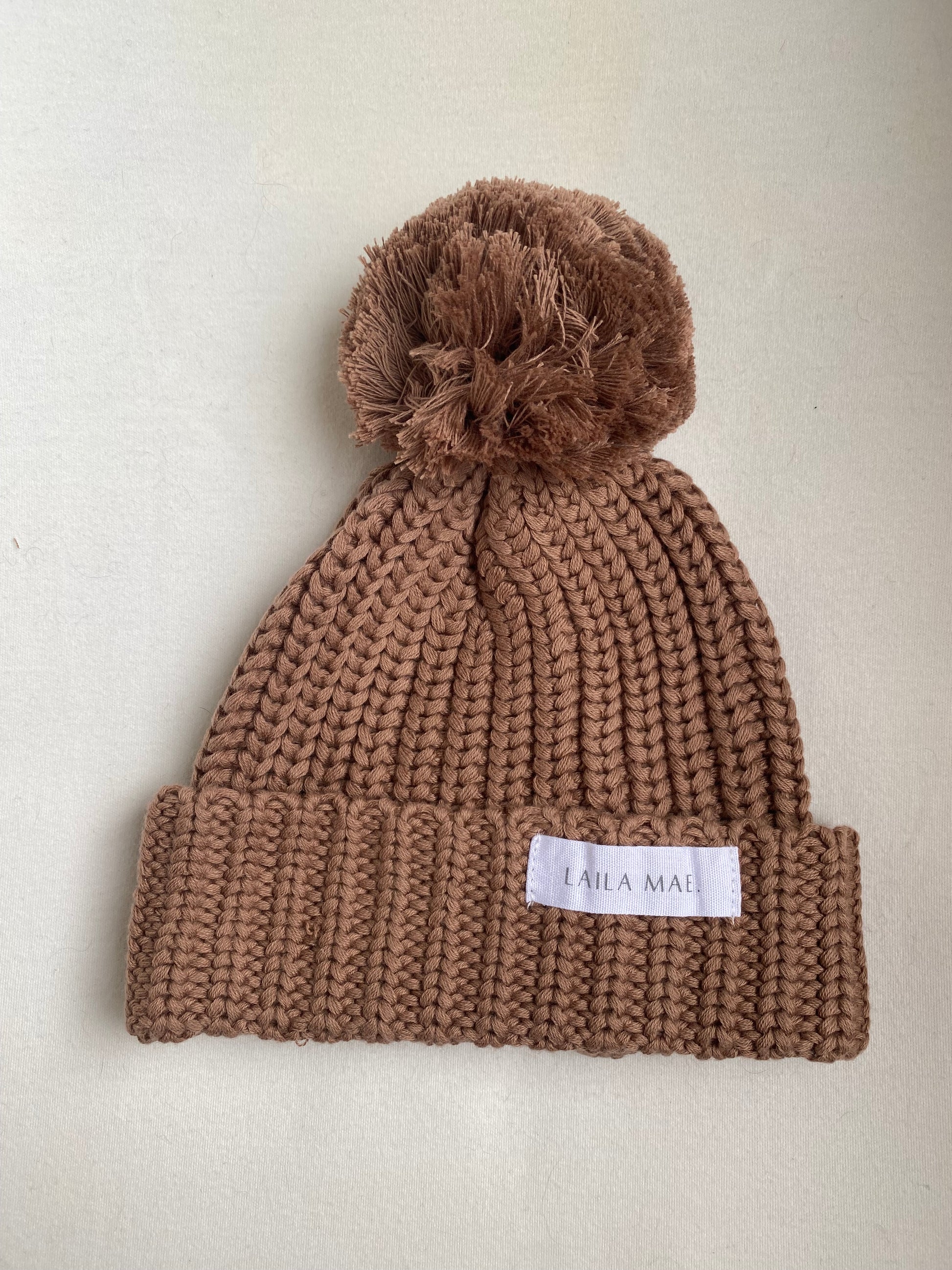 This 100% cotton baby beanie in cocoa is the perfect accessory tp keep your little one cozy and stylish. Crafted from breathable, gentle fabric offers a comfortable fit without irritating sensitive skin. It is snug yet stretchy design ensures it stays in place, making it ideal for everyday wear.